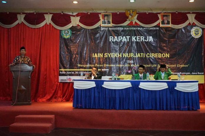 Dr. H. Sumanta Hasyim, M.Ag (Rektor) memebrikan sambutannya pada Rapat Kerja Senat Mahasiswa bertempat di Hotel Ayong Kuningan. Rabu-Jum’at (26-28/02/20)