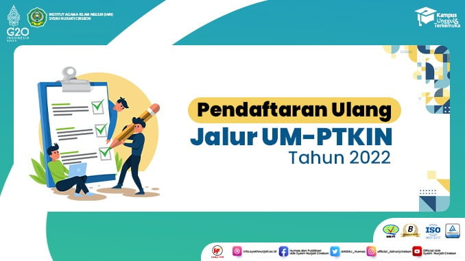 4 July 2022 • Pengumuman Pendaftaran Ulang Calon Mahasiswa Baru IAIN Syekh Nurjati Cirebon Jalur UM- PTKIN Tahun 2022 Unduh Pengumuman PENGUMUMAN REGRISTRASI ULANG MAHASISWA BARU JALUR UMPTKIN 2022 Link daftar ulang SPMB SNJ... Pengumuman