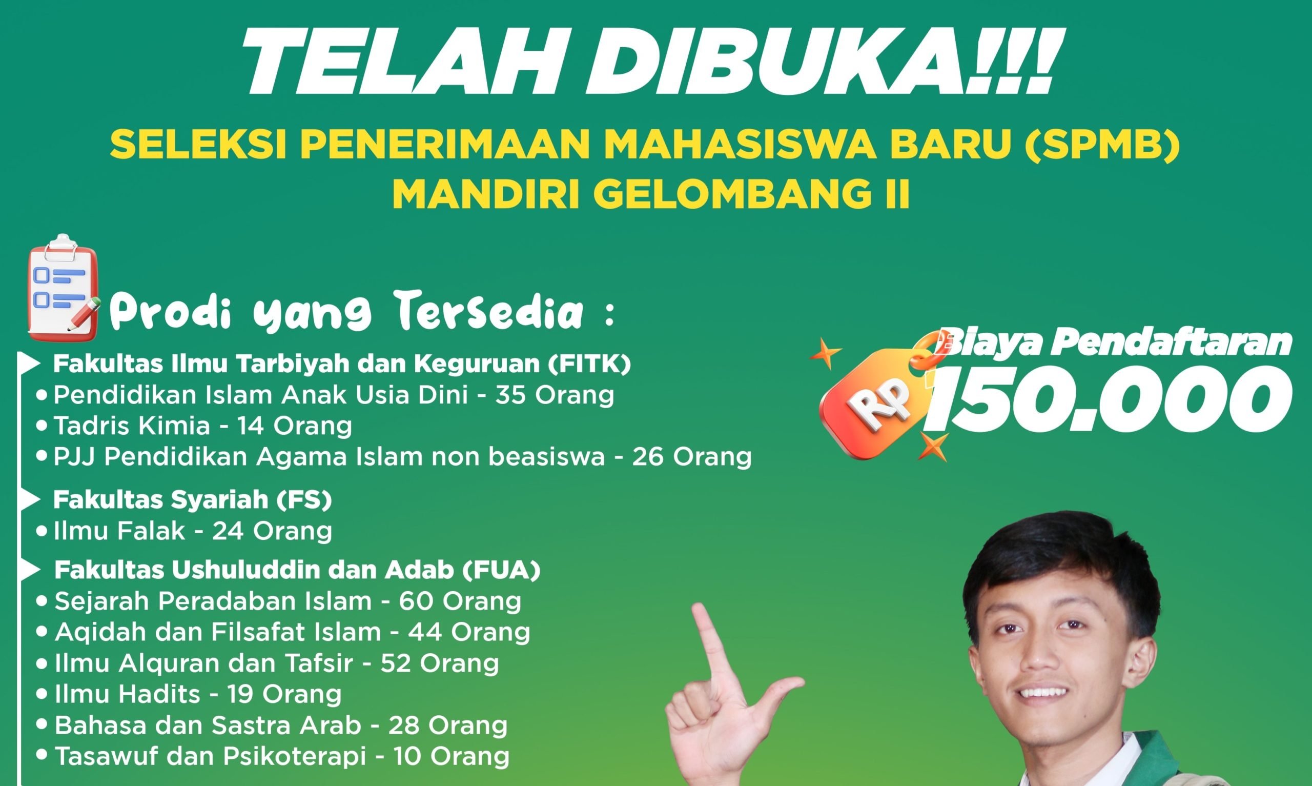 Assalamualaikum #syekhnurjatimuda [[ PENGUMUMAN ]] 📢📢📢 Bagi kalian yang ingin melanjutkan Pendidikan ke jenjang S1, masih ada kesempatan nih… IAIN SNJ Cirebon masih membuka peluang pendaftaran Penerimaan Mahasiswa Baru (SPMB) Mandiri Gelombang 2 Yuk Buruan daftar, KUOTA TERBATAS!!! Informasi Pendaftaran : Klik di sini Link Pendaftaran : Klik di sini