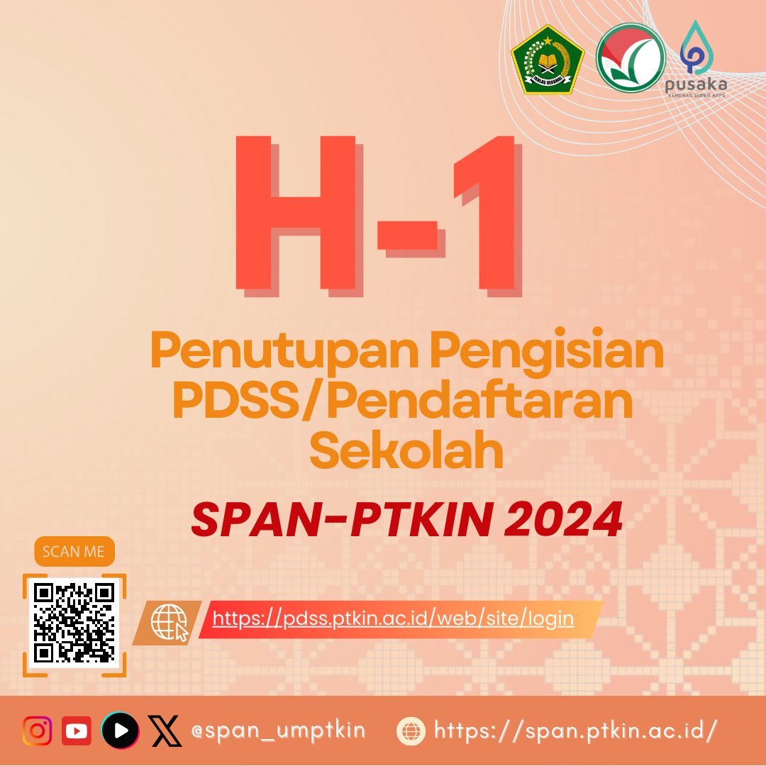 9 February 2024 • H-1 Penutupan Pengisian PDSS/ Pendaftaran Sekolah SPAN-PTKIN 2024 Pendahuluan Berdasarkan peraturan Undang-Undang Nomor 12 Tahun 2012 tentang Pendidikan Tinggi dan Peraturan Pemerintah Republik... Berita Informasi Kegiatan