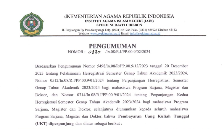 12 February 2024 • 1 Views • Pengumuman Perpanjangan Herregistrasi Semester Genap Tahun Akademik 2023/2024 Untuk Informasi selengkapnya silahkan unduh Link dibawah ini : Pengumuman Perpanjangan Pembayaran UKT sd 18Feb Berita Informasi