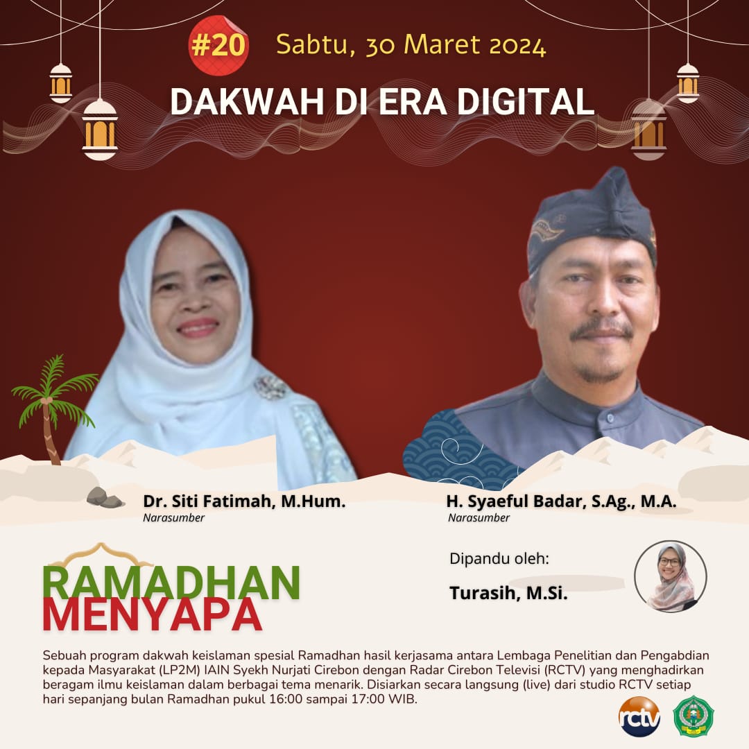 30 March 2024 • “Ramadhan Menyapa” Membahas Dakwah di Era Digital dengan Para Ahli IAIN Cirebon – Memasuki hari keduapuluh bulan suci Ramadhan, “Ramadhan Menyapa” terus menggelorakan semangat keberagaman... Berita Informasi Kegiatan