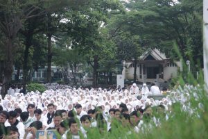 UIN Siber Cirebon — Suasana religius dan khidmat menyelimuti halaman Ma’had Al Jami’ah dan Gedung Rektorat Universitas Islam Negeri (UIN) Siber Syekh Nurjati Cirebon, atau yang lebih dikenal sebagai Cyber Islamic University (CIU), dalam pelaksanaan Praktik Manasik Haji dan Umroh Tahun 2025. Kegiatan besar ini diikuti oleh lebih dari 3.000 mahasiswa lintas program studi, menjadikannya salah satu praktik manasik terbesar di lingkungan Perguruan Tinggi Keagamaan Islam Negeri (PTKIN).