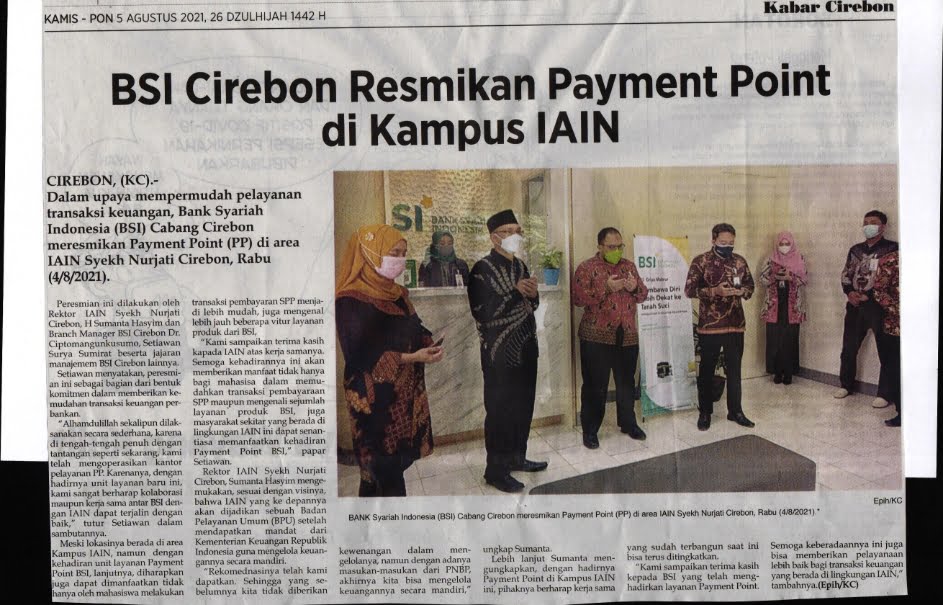 BSI Cirebon Resmikan Payment Point di Kampus IAIN (Kabar Cirebon/5 Agustus 2021)