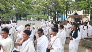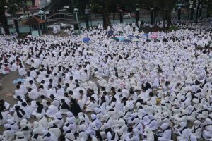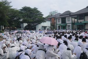 UIN Siber Cirebon – Sebanyak 3.000 mahasiswa lintas jurusan Universitas Islam Negeri (UIN) Siber Syekh Nurjati Cirebon atau Cyber Islamic University (CIU), larut dalam kekhusyukan suasana spiritual manasik haji-umroh yang diselenggarakan oleh Ma’had Al Jami’ah, Minggu (25 Juli 2025). Kegiatan tahunan yang dipimpin langsung oleh Direktur Ma’had Al Jami’ah, Dr. Muhsin Riyadi, M.Ag., ini menghadirkan simulasi pelaksanaan ibadah haji-umroh layaknya ribuan jamaah haji di tanah suci Arab Saudi.