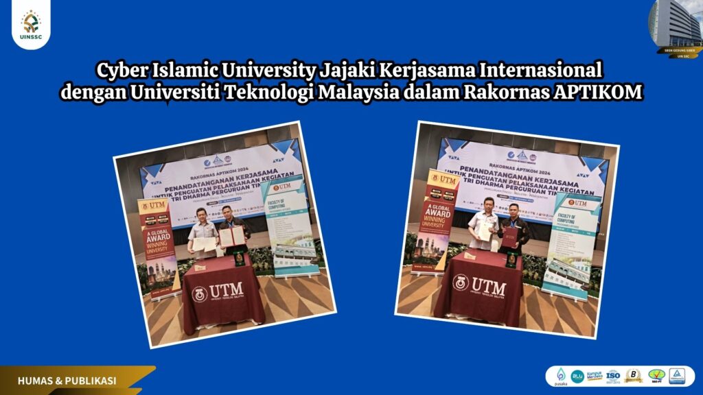 UIN Siber Cirebon (Medan) — UIN Siber Syekh Nurjati Cirebon, yang juga dikenal sebagai Cyber Islamic University (CIU), menegaskan komitmennya terhadap Tri Dharma Perguruan Tinggi melalui upaya kolaborasi internasional dengan Universiti Teknologi Malaysia (UTM). Penjajakan kerjasama ini dituangkan dalam bentuk Letter of Intent (LoI), yang ditandatangani pada acara Rapat Koordinasi Nasional (Rakornas) APTIKOM di Medan, yang berlangsung dari tanggal 24 hingga 26 Oktober 2024.