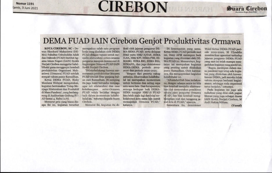 Home » Pos » Kliping Digital » DEMA FUAD IAIN Cirebon Genjot Produktivitas Ormawa (Suara Cirebon/3 Juni 2021)