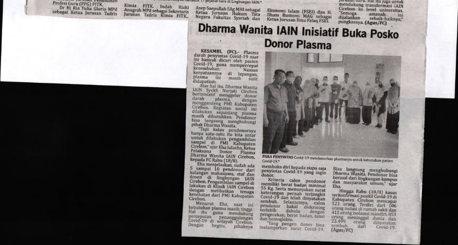 Home » Pos » Kliping Digital » Dharma Wanita IAIN Buka Donor Plasma (Fajar Cirebon/19 Agustus 2021)