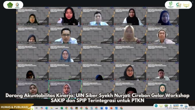 UIN Siber Cirebon — Dalam upaya memperkuat tata kelola dan akuntabilitas kinerja di lingkungan Perguruan Tinggi Keagamaan Negeri (PTKN), Satuan Pengawas Internal (SPI) UIN Siber Syekh Nurjati Cirebon menyelenggarakan Workshop Teknis Evaluasi atas Implementasi SAKIP dan Teknis Pengisian KKE Penilaian Mandiri SPIP Terintegrasi. Kegiatan ini digelar secara daring melalui Zoom Meeting pada Senin, 3 November 2025, pukul 09.00 WIB, dan diikuti oleh perwakilan PTKN serta sejumlah perwakilan dari kantor wilayah Kementerian Agama di berbagai daerah.