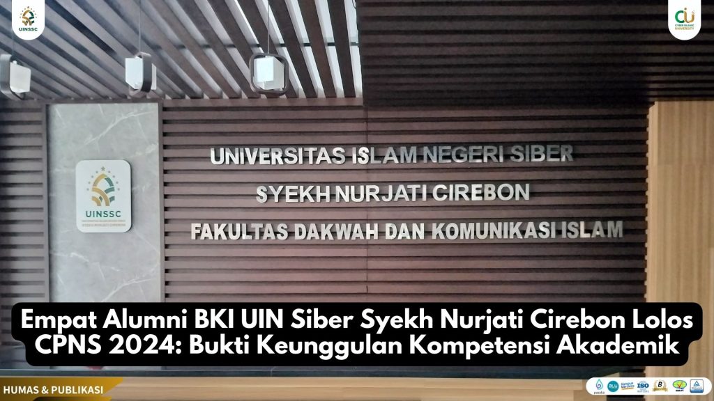 UIN Siber Cirebon – Universitas Islam Negeri (UIN) Siber Syekh Nurjati Cirebon, yang juga dikenal dengan Cyber Islamic University (CIU), kembali mencatatkan kesuksesan melalui empat alumninya yang berhasil lolos seleksi Calon Pegawai Negeri Sipil (CPNS) 2024. Para alumni tersebut adalah Tia Khaerunnisa, S.Sos. (angkatan 2017) untuk formasi Penyuluh Agama di Kanwil Kementerian Agama Jawa Barat, Zakki Ali Irfan, S.Sos. (angkatan 2014) untuk formasi Guru Bimbingan Konseling (BK) di Kanwil Kemenag Palembang, serta Vina Yuliana, S.Sos. (angkatan 2017) dan Rika Septiani, S.Sos. (angkatan 2017) yang berhasil menempati formasi Guru BK di Kanwil Kemenag Jawa Barat. Senin, (13/01/2025).