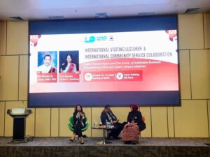 Mengusung tema “Digital Transformation and The Future of Sustainable Business: Strengthening SDGs and Green Campus Initiatives”, kegiatan ini menghadirkan dua narasumber internasional asal Filipina, yaitu Mr. Richard S. Javier, MBA, Ph.D. dan Prof. Marielle Justine C. Sumilong.