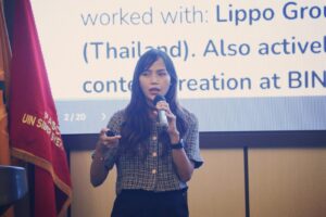 Angtyasti Jiwasiddi membawakan materi mengenai strategi efektif dalam memanfaatkan platform digital untuk menjangkau konsumen yang lebih luas dan spesifik. Ia menekankan bahwa memahami karakteristik konsumen digital menjadi kunci keberhasilan dalam memasarkan produk maupun jasa di era saat ini.