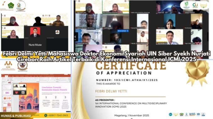 UIN Siber Cirebon — Prestasi gemilang kembali diraih oleh mahasiswa Program Doktor Ekonomi Syariah UIN Siber Syekh Nurjati Cirebon, Febri Delmi Yetti, yang berhasil menjadi presenter terbaik dalam ajang internasional bergengsi The 1st International Conference on Multidisciplinary Innovation (ICMI) 2025. Konferensi ini diselenggarakan oleh Atha Publishing Globalindo pada Sabtu, 1 November 2025, dan diikuti oleh para akademisi dari berbagai negara.