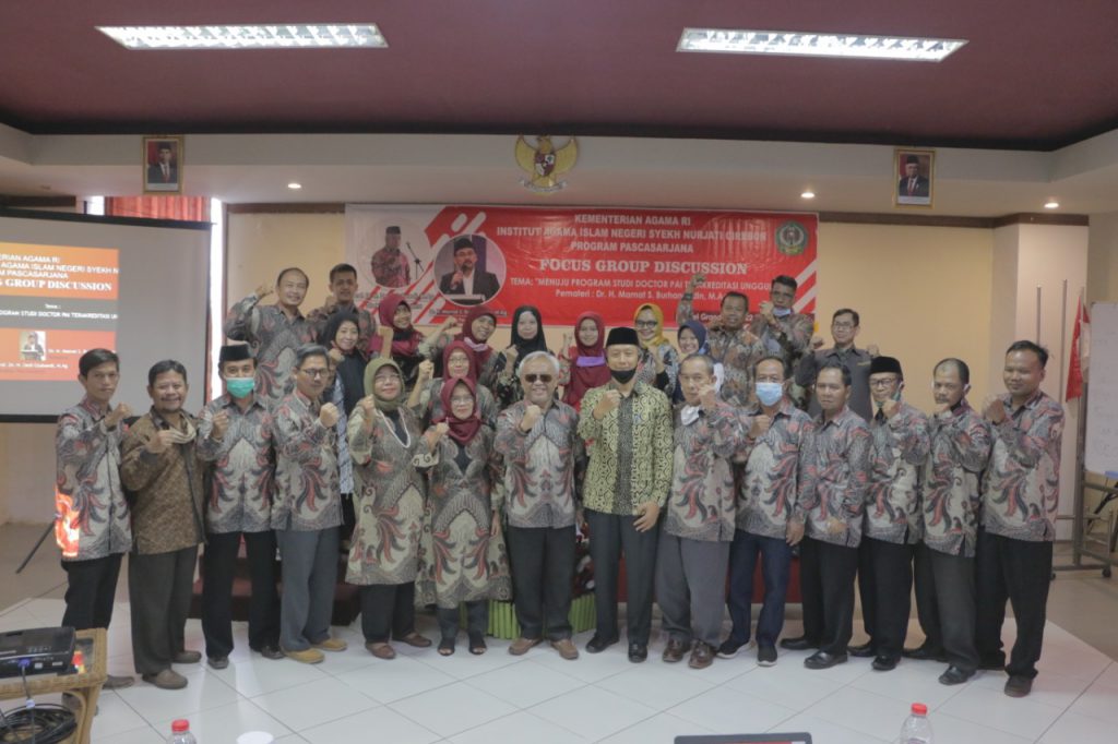 Program Pascasarjana Institut Agama Islam Negeri (IAIN) Syekh Nurjati Cirebon menggelar kegiatan Focus Group Discussion dengan tema ” Menuju Program Studi Doktor Pendidikan Agama Islam (PAI) yang Terakreditasi Unggul” di hotel Grand Triyas Hotel Cirebon dengan memperhatikan protokol kesehatan ditengah wabah covid-19. Kegiatan tersebut dibuka langsung oleh Dr. H. Saefudin Zuhri, M.Ag (Warek I), didampingi oleh Prof. Dr. H. Dedy Djubaedi, M.Ag (Direktur Pascasarjana). Kegiatan tersebut dihadiri oleh unsur pejabat, unsur pimpinan dan segenap pegawai di lingkungan program pascasarjana. Selaku pemateri kegiatan FGD kali ini adalah Dr. H. Mamat S. Burhanudin, M.Ag. Kamis (22/10).