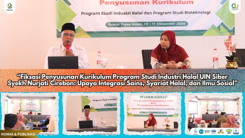 UIN Siber Cirebon – Selama dua hari, Workshop Penguatan Pengelolaan Lembaga Pemeriksa Halal (LPH) dan Penyusunan Kurikulum untuk Program Studi Industri Halal dan Bioteknologi digelar di Grand Tryas Hotel, Cirebon. Acara yang berlangsung pada Selasa dan Rabu (10-11/12/2024) ini diinisiasi oleh LPH UIN Siber Syekh Nurjati Cirebon, yang dikenal sebagai Cyber Islamic University (CIU).