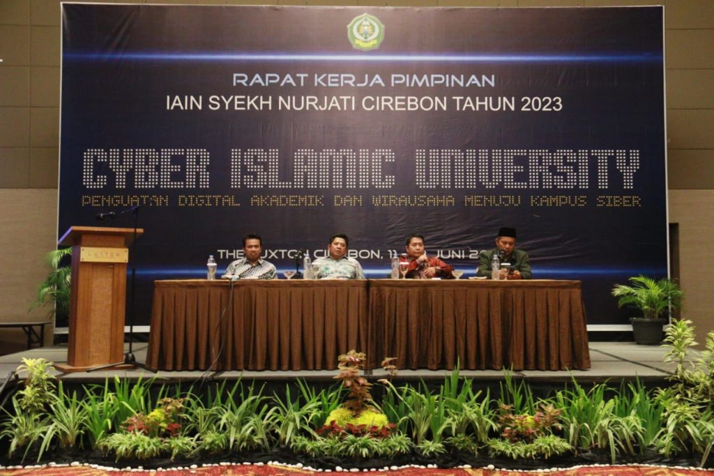 Institut Agama Islam Negeri (IAIN) Syekh Nurjati Cirebon menggelar Rapat Kerja Pimpinan (Rakerpim) dalam rangka review program kerja Tahun 2023 dan menyusun Program kerja Tahun 2024 IAIN Syekh Nurjati Cirebon dengan tema “Penguatan Digital Akademik dan Wirausaha Menuju Kampus Siber” bertempat di Luxton Hotel Cirebon tanggal 11 s.d 13 Juni 2023.