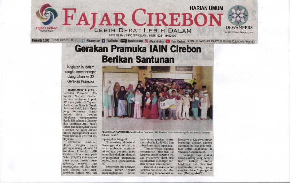 Home » Pos » Kliping Digital » Gerakan Pramuka IAIN Cirebon Berikan Santunan (Fajar Cirebon/2 Agustus 2021)