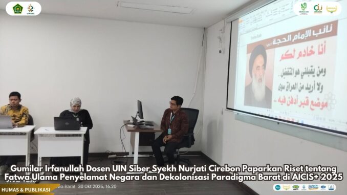 UIN Siber Cirebon (Depok) — Dosen Universitas Islam Negeri (UIN) Siber Syekh Nurjati Cirebon, Gumilar Irfanullah, M.Si., dari Jurusan Sejarah Peradaban Islam, Fakultas Ushuluddin dan Adab, menjadi salah satu presenter dalam forum akademik bergengsi Annual International Conference on Islamic Studies Plus (AICIS+) 2025 yang diselenggarakan di Universitas Islam Internasional Indonesia (UIII) Depok.(30/10).