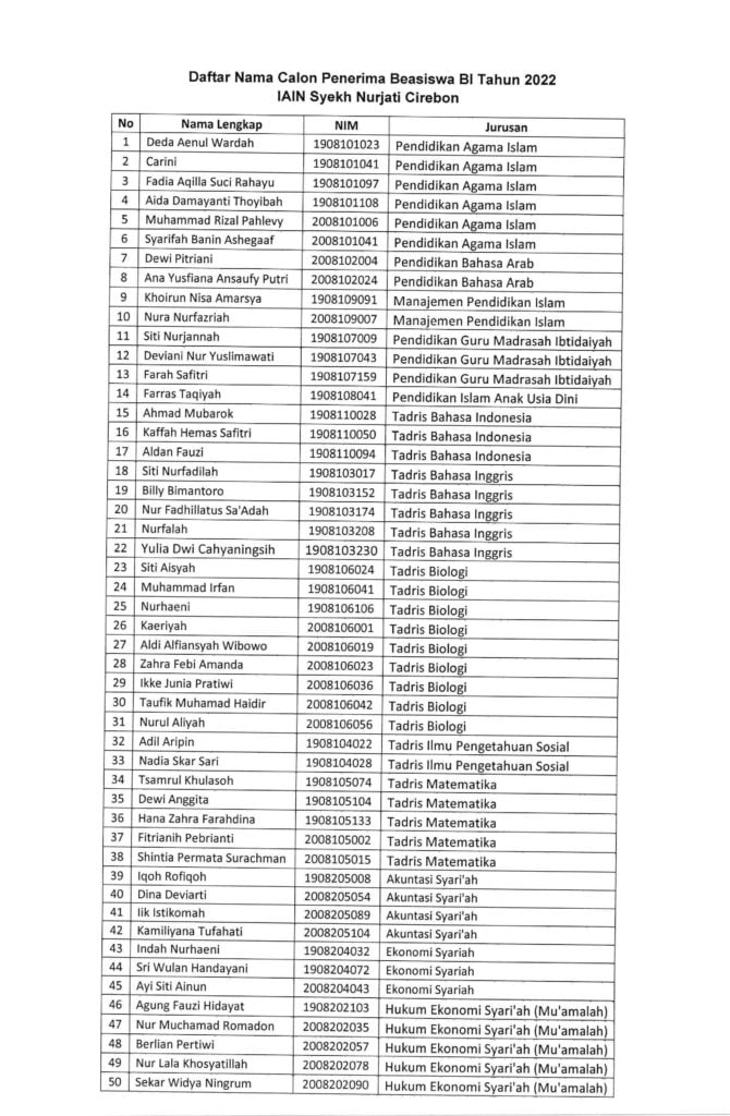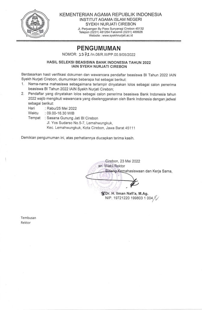 HASIL SELEKSI BEASISWA BANK INDONESIATAHUN 2022