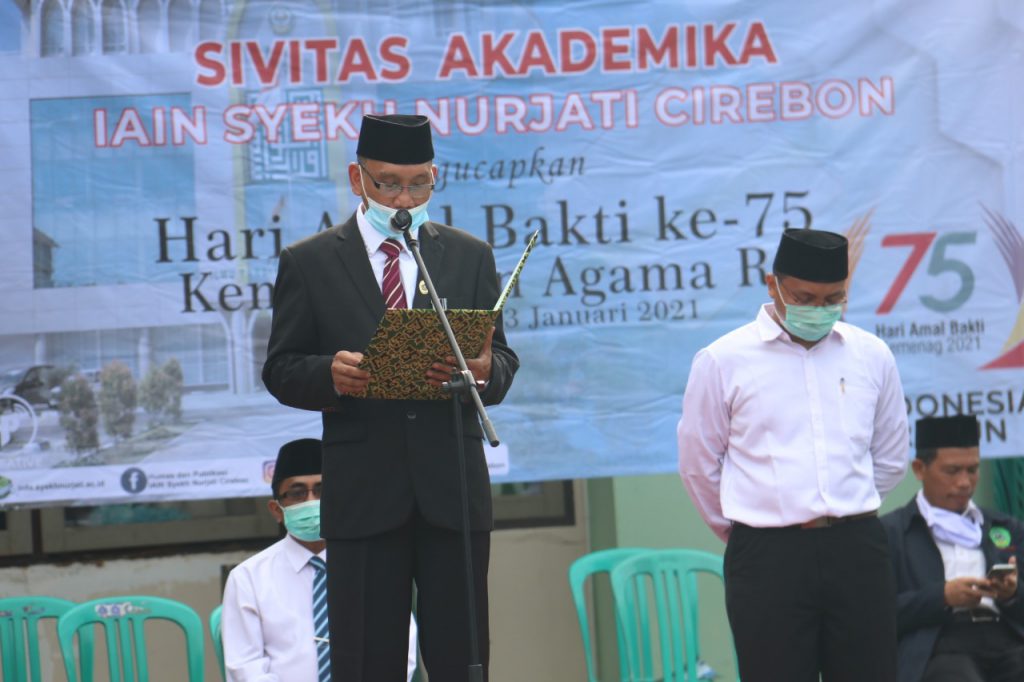 Sementara itu, Pranata Humas IAIN Syekh Nurjati Cirebon, H Mohamad Arifin MPdI menerangkan, pelaksanaan upacara peringatan HAB ke-75 Kemenag RI di kampus setempat tersebut menerapkan protokol kesehatan. Untuk itu, peserta upacara pun dibatasi agar tidak menimbulkan kerumunan.
