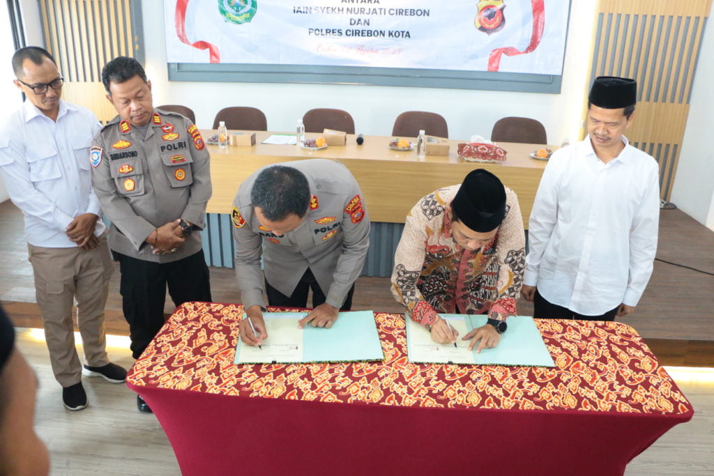 Polres Cirebon Kota bersama IAIN Syekh Nurjati Cirebon melakukan penandatangan kerjasama (MoU) di bidang Kamtibmas. Kegiatan tersebut dihadiri para Wakil Rektor, para Dekan, dan para pejabat di lingkungan Rektorat serta dari jajaran Polres Cirebon Kota, Senin, (8/08/2023).