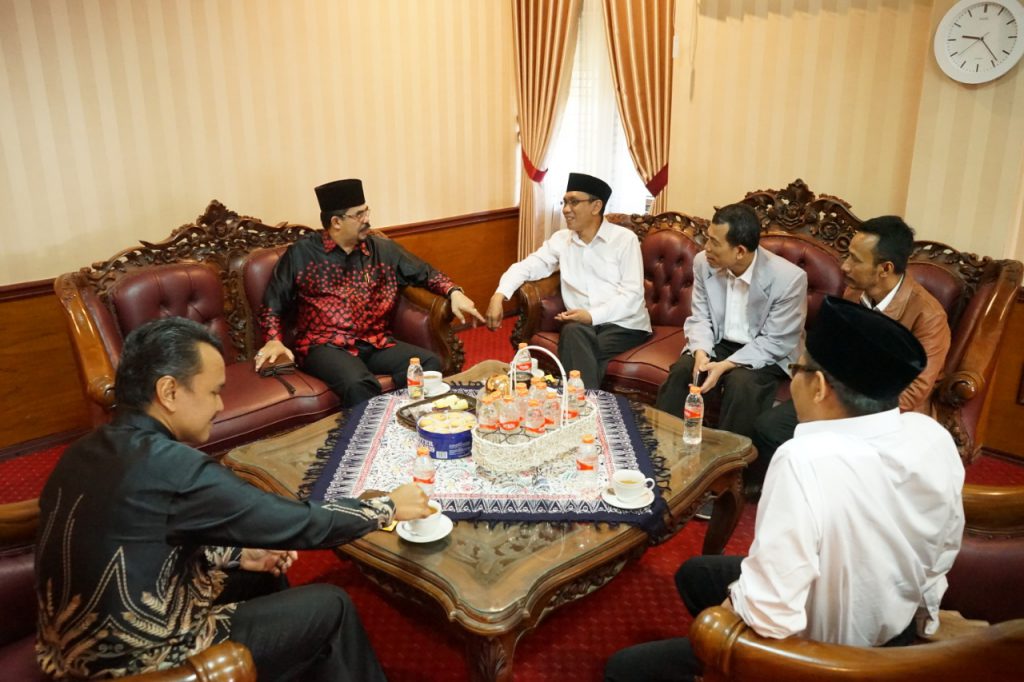 Institut Agama Islam Negeri (IAIN) Syekh Nurjati Cirebon menerima kunjungan dari IAIN Batusangkar, Sumatera Barat yang dipimpin langsung oleh Dr. H. Kasmuri, M.A (Rektor IAIN Batusangkar) didampingi unsur pimpinan. Rombongan diterima langsung oleh Dr. H. Sumanta Hasyim, M.Ag (Rektor) didampingi unsur pimpinan di ruang senet rektorat lantai 2 IAIN Syekh Nurjati Cirebon. Kunjungan tersebut bertujuan untuk menjalin kerjasama sekaligus penandatanganan MoU IAIN Syekh Nurjati Cirebon dengan IAIN Batusangkar, Sumatera Barat. Senin (09/03).
