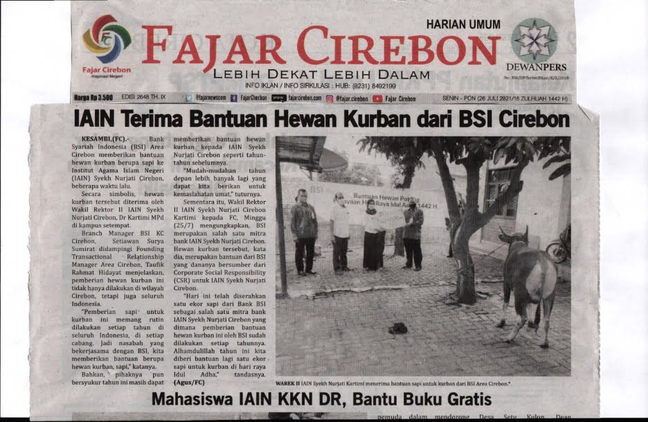 Home » Pos » Kliping Digital » IAIN Terima Bantuan Hewan Kurban dari BSI Cirebon (Fajar Cirebon/26 Juli 2021)