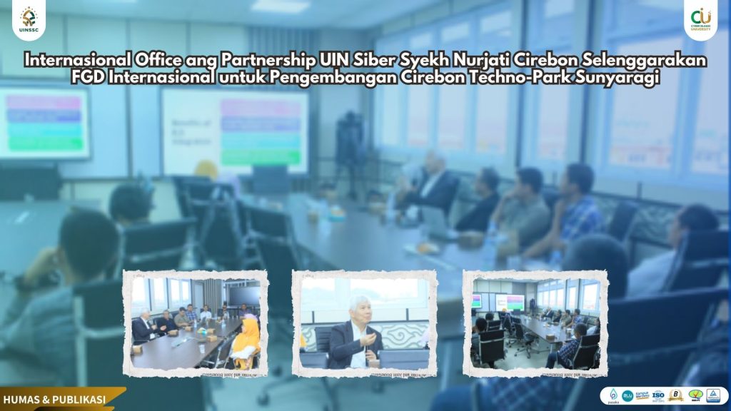 UIN Siber Cirebon – International Office and Partnership (IOP) UIN Siber Syekh Nurjati Cirebon (UIN SSC) sukses menyelenggarakan Forum Diskusi Grup Internasional (FGD) bertajuk “Innovating for Social Impact: International Research Collaboration and Sunyaragi-Inspired Techno-Park Development in Cirebon City”. Kegiatan yang digelar di Auditorium UIN SSC ini dipimpin oleh Lala Bumela Sudimantara, Ph.D., Direktur IOP UIN SSC, dan menjadi langkah awal dalam mengintegrasikan inovasi global dengan kearifan lokal Cirebon.