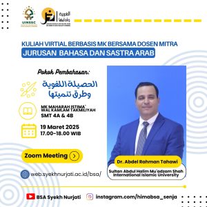 UIN Siber Cirebon – Jurusan Bahasa dan Sastra Arab (BSA) Fakultas Ushuluddin dan Adab UIN Siber Syekh Nurjati Cirebon, atau yang dikenal dengan Cyber Islamic University (CIU), kembali menghadirkan inovasi akademik dengan menggelar Kuliah Virtual Berbasis Mata Kuliah (MK) Bersama Dosen Mitra. Mengusung tema “Kekayaan Kosakata dan Cara Efektif untuk Mengembangkannya,” kegiatan ini bertujuan untuk meningkatkan pemahaman mahasiswa dalam memperluas dan memperkaya kosakata bahasa Arab. Rabu, (19/03/2025).