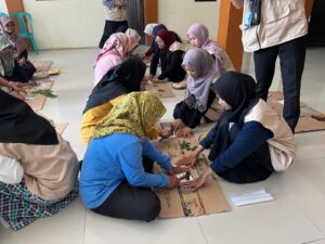 Selama sesi praktik, peserta sangat antusias mencoba teknik yang diajarkan. Mereka berhasil membuat kain ecoprint dengan motif unik, yang dibawa pulang sebagai hasil karya pertama.