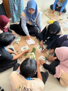 Kegiatan ini merupakan bagian dari program pemberdayaan masyarakat dengan tema “Pemanfaatan Sumber Daya Alam Lokal untuk Keterampilan Ramah Lingkungan”. Ecoprint sendiri adalah teknik mencetak motif pada kain menggunakan bahan alami seperti daun, bunga, dan batang tanaman. Pewarnaan yang dihasilkan berasal dari pigmen alami tumbuhan, sehingga ramah lingkungan dan mendukung konsep sustainable living.