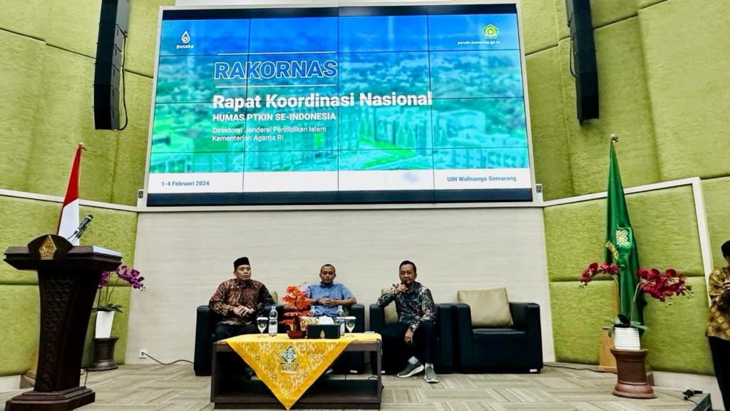 IAIN Cirebon (Semarang) – Ketua Forum Humas Perguruan Tinggi Keagamaan Islam Negeri (Forhumas PTKIN), Hayatul Islam, bersama Kasubtim Humas Pendis Khaerul Umam, memimpin rapat strategis SPAN-UM PTKIN dalam upaya meningkatkan sosialisasi dan brand image PTKIN. Rapat ini berlangsung di sela-sela kegiatan AICIS 2024 di UIN Walisongo Semarang pada Sabtu, (03/02/2024).