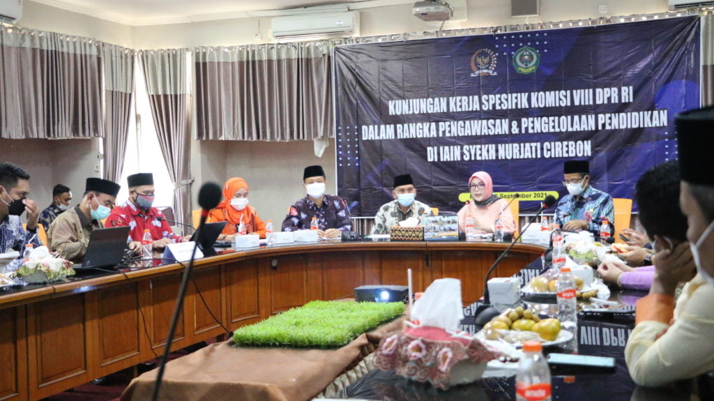 Rombongan Komisi VIII DPR RI, Kamis (16/9/2021), melakukan kunjungan kerja spesifik dalam rangka pengawasan dan pengelolaan pendidikan di IAIN Syekh Nurjati Cirebon, yakni persiapan IAIN Cirebon menjadi kampus Siber Indonesia.