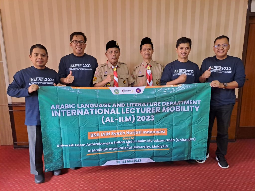 Cirebon (19/05). Prof. Dr. H. Aan Jaelani, M.Ag, Rektor IAIN Syekh Nurjati melepas dosen Bahasa dan Sastra Arab (BSA) peserta program Arabic Language and Literature Departmen-International Lecture Mobility (AL-ILM) tahun 2023 di Malaysia. Program yang digagas oleh Jurusan BSA IAIN Syekh Nurjati ini merupakan salah satu dari desain program unggulan jurusan, yaitu International Mobility Program (IMP). Dalam arahanya, Rektor menekankan pentingnya rekognisi internasional melalui penguatan tridarma perguruan tinggi yang adaptif dan responsif terhadap dinamika globalisasi. Selain pentingnya membangun jejaring internasional sebagai daya dukung visi IAIN Syekh Nurjati menjadi World Class University (WCU).