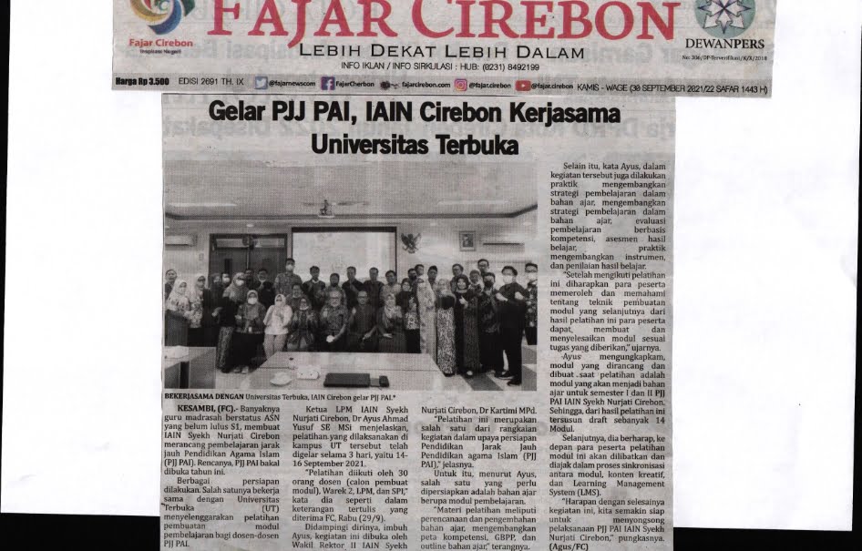 Gelar PJJ PAI, IAIN Cirebon Kerjasama Universitas Terbuka (Fajar Cirebon/30 September 2021)