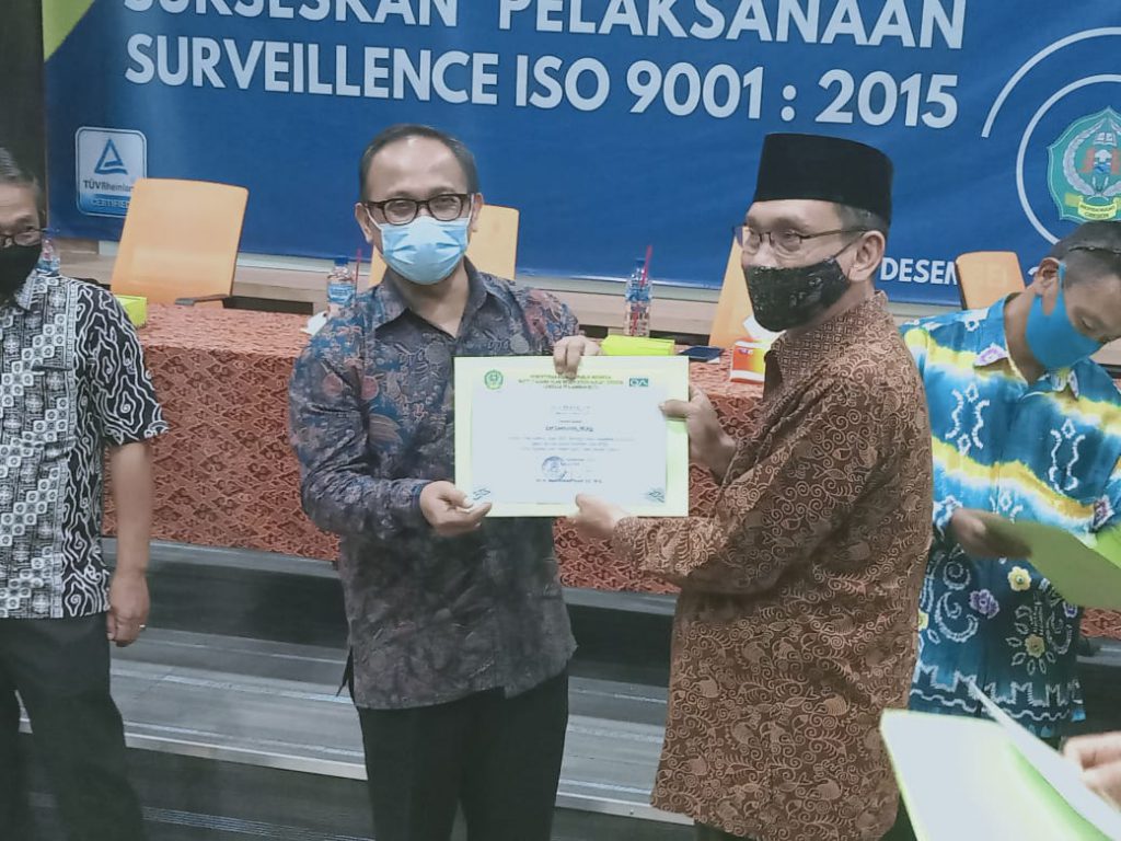 “Jadi ini adalah sejenis sertifikat internasional sistem penjaminan mutu yang dilaksanakan di Perguruan Tinggi dan ini adalah tahun ketiga, proses sertifikat ini berlakunya satu tahun, jadi setiap tahun kita melakukan surveillence ISO,” katanya.