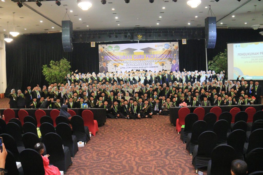 IAIN Cirebon – Gemuruh tepuk tangan dari ratusan guru profesional menggema di ruang hotel, di Kota Cirebon. Tepuk tangan ini sebagai bentuk curahan rasa syukur dan bangga mereka yang telah dikukuhkan sebagai guru profesional oleh Rektor IAIN Syekh Nurjati Cirebon dan dilangsungkan dengan penyematan sebagai tanda mereka lulus sebagai guru profesional, Senin, (16/10/2023).