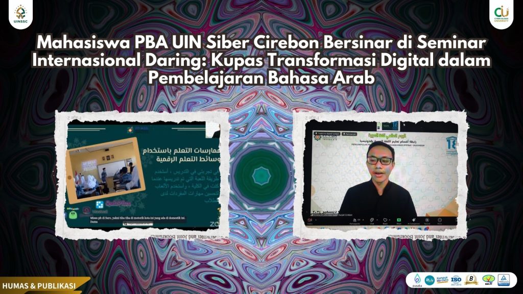UIN Siber Cirebon – Muhammad Ibnu Setiawan Pratama, mahasiswa semester 7 Program Studi Pendidikan Bahasa Arab (PBA) Fakultas Ilmu Tarbiyah dan Keguruan (FITK) UIN Siber Syekh Nurjati Cirebon, yang juga dikenal dengan Cyber Islamic University (CIU), mencatatkan prestasi membanggakan dengan tampil sebagai presenter dalam Seminar Internasional memperingati Hari Bahasa Arab. Acara prestisius ini digelar secara daring serta diikuti oleh mahasiswa PBA dari berbagai negara, mulai jenjang S1 hingga S3. Minggu, (22/12/2024)
