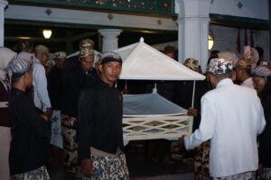 Prosesi dimulai dengan pembacaan shalawat dan doa bersama, lalu dilanjutkan dengan arak-arakan pusaka keraton yang dijaga dengan khidmat. Mahasiswa KPI turut mendokumentasikan setiap tahapan, merekam momen-momen bersejarah tersebut untuk kepentingan edukasi dan publikasi digital.