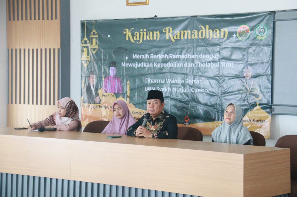 IAIN Cirebon – Dharma Wanita Persatuan Institut Agama Islam Negeri (IAIN) Syekh Nurjati Cirebon telah menggelar kegiatan kajian Ramadhan yang memikat hati, bertajuk “Meraih Berkah Ramadhan dengan Mewujudkan Kepedulian dan Tholabul Ilmi”. Acara yang berlangsung di aula gedung rektorat lantai 3 ini menghadirkan Prof. Dr. H Farihin, M.Pd., sebagai narasumber.