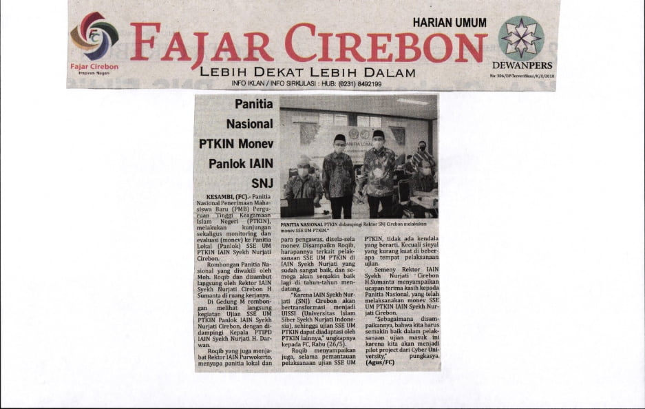 Home » Pos » Kliping Digital » Panitia Nasional PTKIN Monev Panlok IAIN SNJ (Fajar Cirebon/26 Mei 2021)