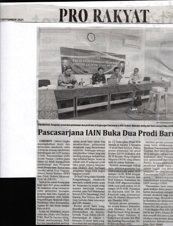 Pascasarjana IAIN Buka Dua Prodi Baru (Kabar Cirebon/10 September 2021)
