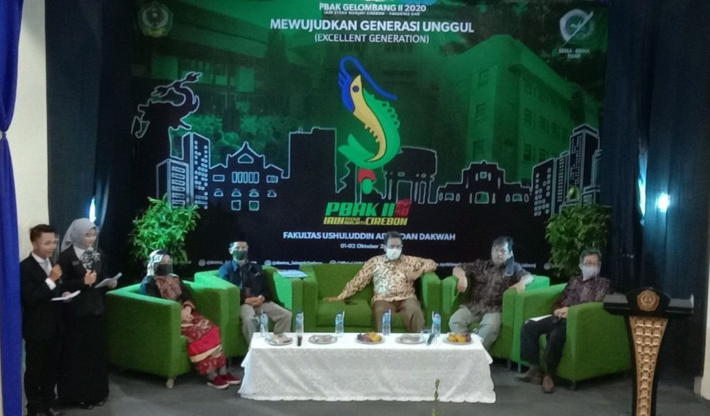 Fakultas Ushuludin Adab dan Dakwah (FUAD) Institut Agama Islam Negeri (IAIN) Syekh Nurjati Cirebon menggelar Pengenalan Budaya Akademik dan Kemahasiswaan (PBAK) gelombang II secara online yang diikuti 168 mahasiswa baru. Kegiatan tersebut dihadiri oleh Dr. H. Ilman Nafi’a, M.Ag (Warek III), Dr. H. Hajam, M.Pd (Dekan FUAD), dan didampingi unsur pimpinan dekanat. Kamis (1/10/2020).