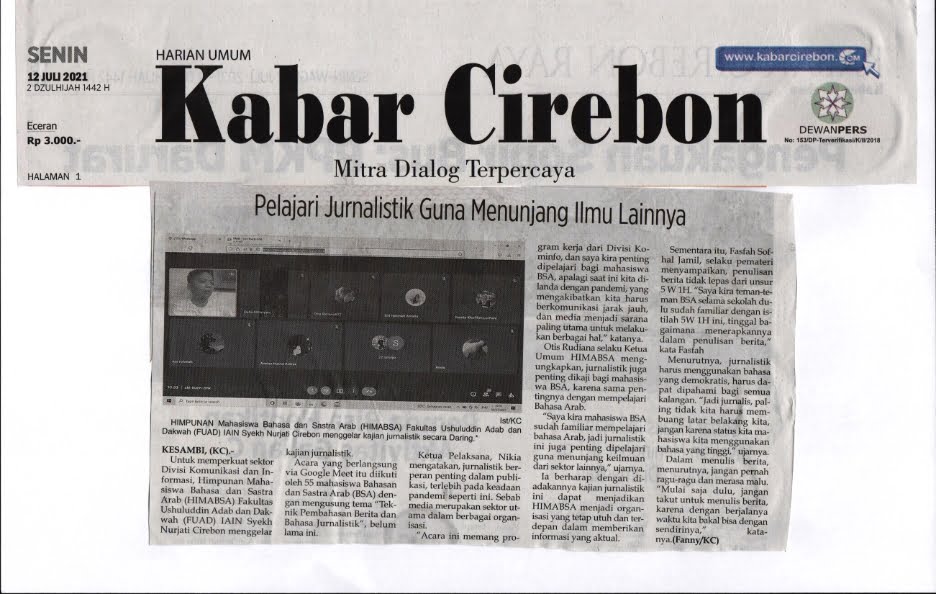Pelajari Jurnalistik Guna Menunjang Ilmu Lainnya (Kabar Cirebon/12 Juli 2021)
