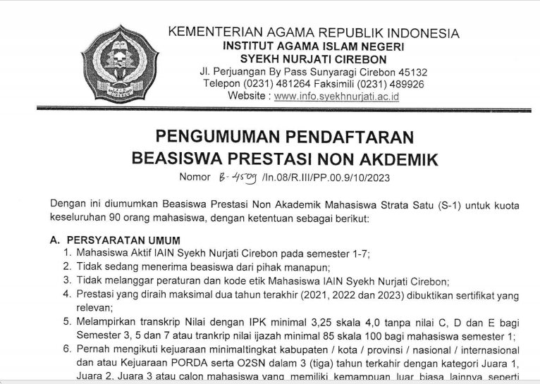 28 October 2025 • 99 Views • Pengumuman Pendaftaran Wisuda Sarjana, Magister, dan Doktor Ke-3 Universitas Islam Negeri Siber Syekh Nurjati Cirebon