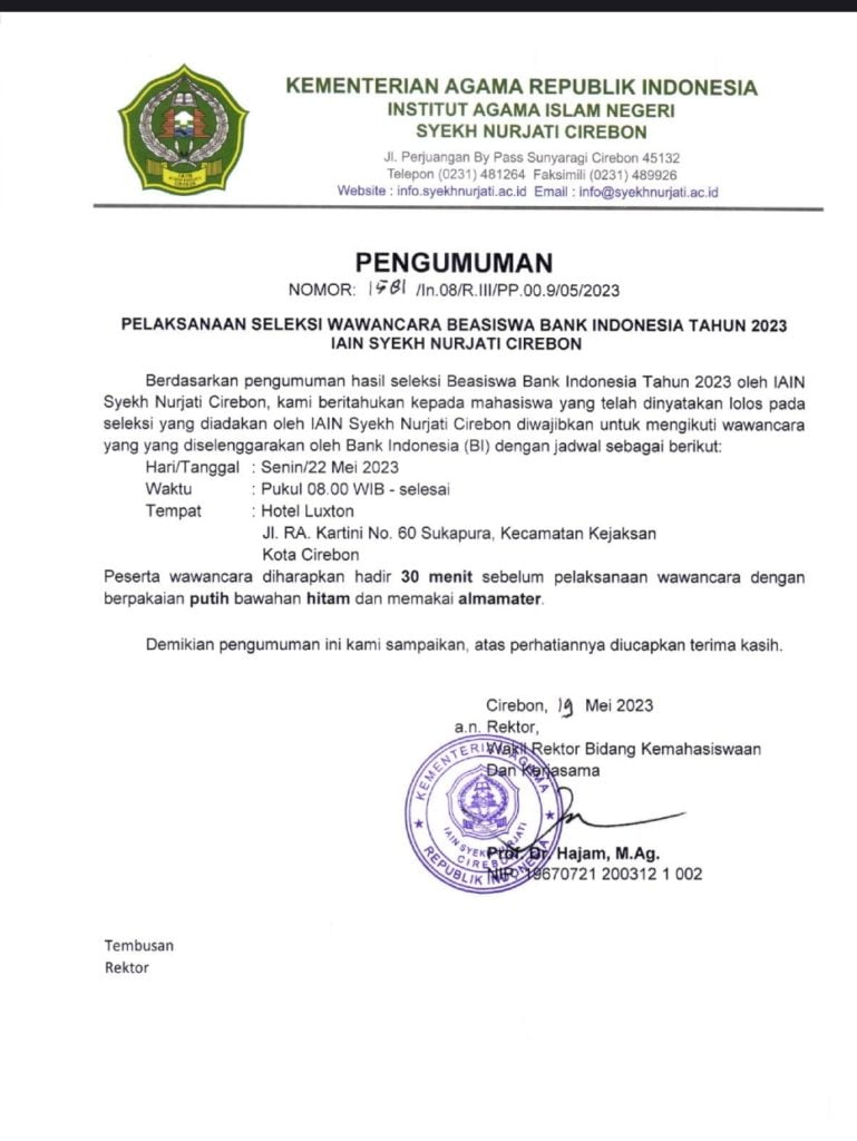 28 October 2025 • 78 Views • Pengumuman Pendaftaran Wisuda Sarjana, Magister, dan Doktor Ke-3 Universitas Islam Negeri Siber Syekh Nurjati Cirebon