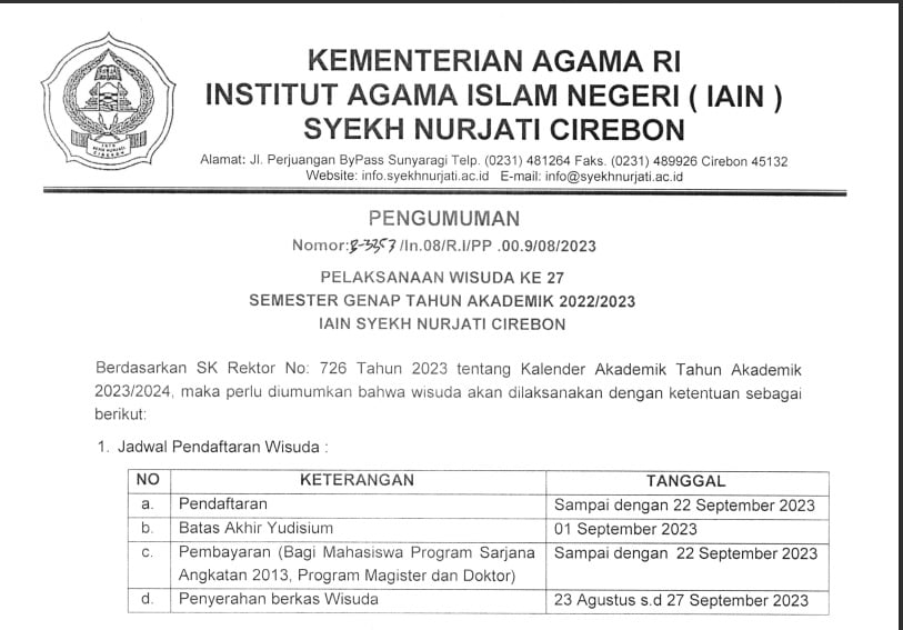 UNDUH PENGUMUMAN DAN FORM PENDAFTARAN WISUDA