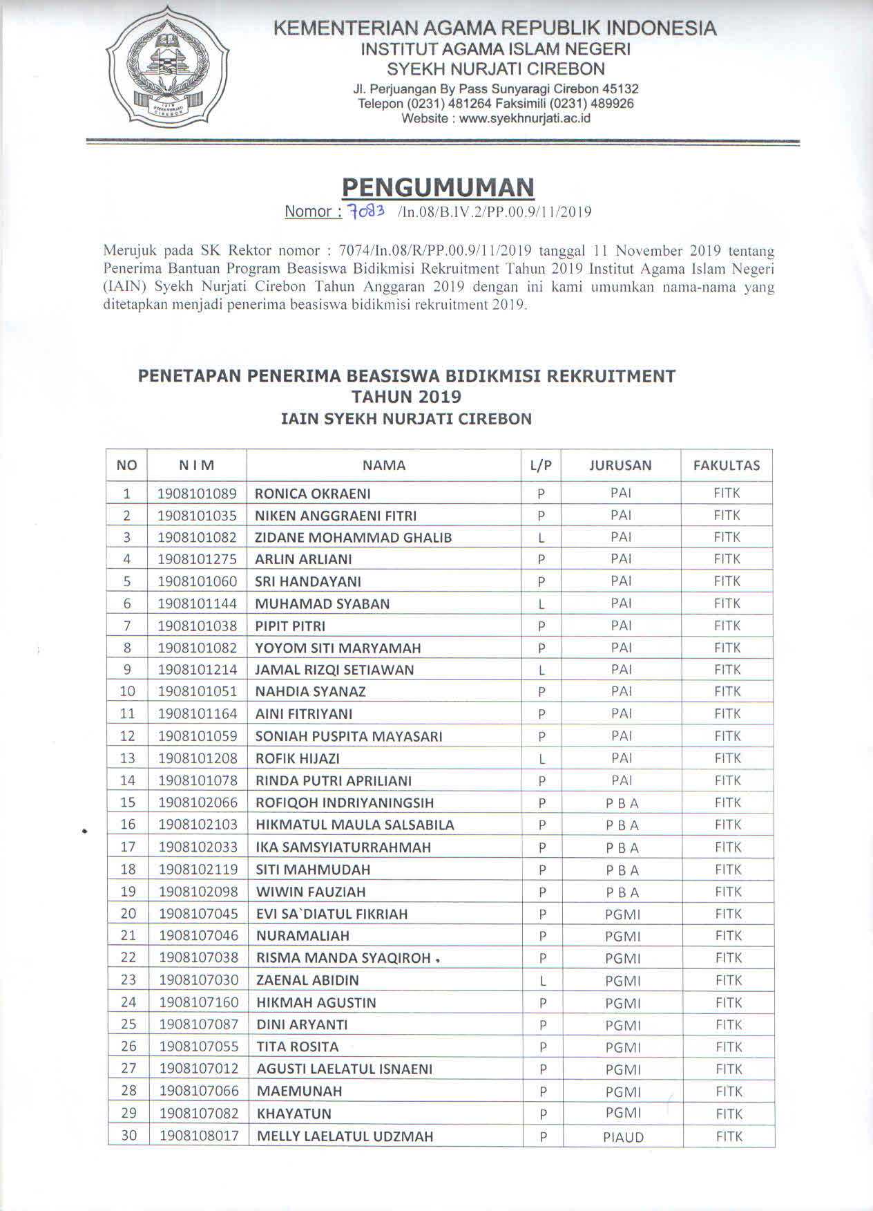 Pengumuman Penetapan Penerima Beasiswa Bidikmisi tahun 2019 11 November 2019 arifin Informasi, Kegiatan 0 Humas dan Publikasi