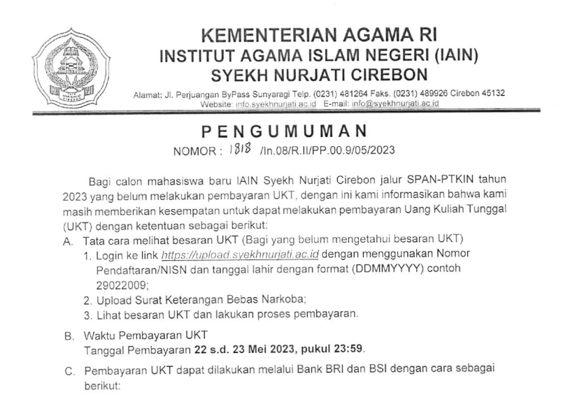 28 October 2025 • 43 Views • Pengumuman Pendaftaran Wisuda Sarjana, Magister, dan Doktor Ke-3 Universitas Islam Negeri Siber Syekh Nurjati Cirebon