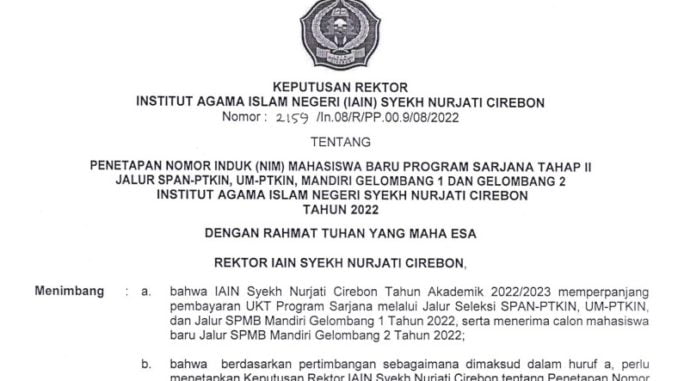 PENGUMUMAN SK PENETAPAN NIM TAHAP 2 2 September 2022 arifin Pengumuman 0 UNDUH DOKUMEN SK PENETAPAN NIM TAHAP 2